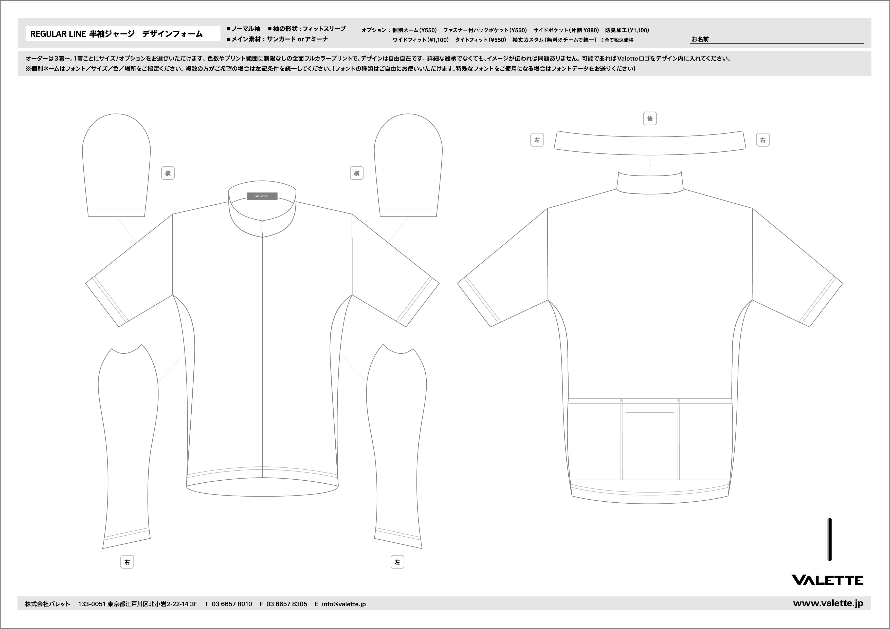 ※ えりの有無はお一人様ずつ選択が可能ですが、各形態の合計注文数が2 着以下の場合は 1 着につき、小ロットアップチャージ¥1,000(税別)が発生いたします。
